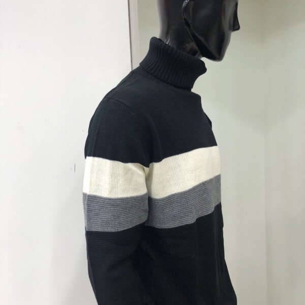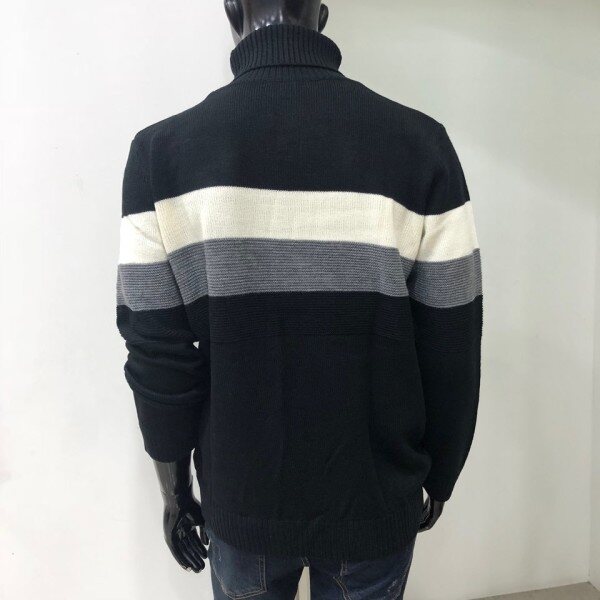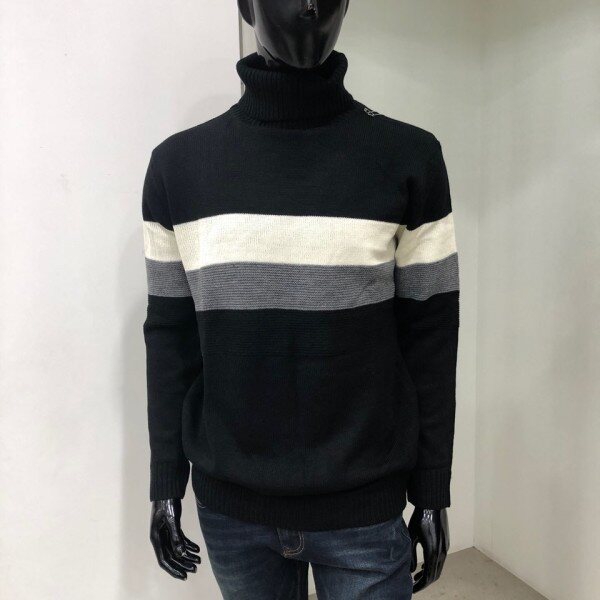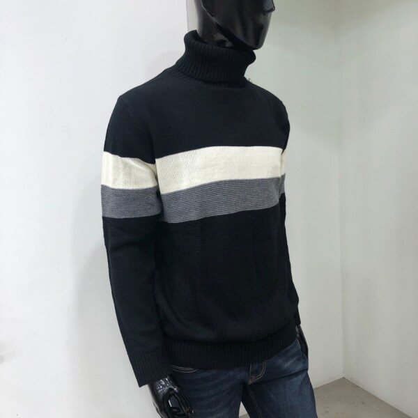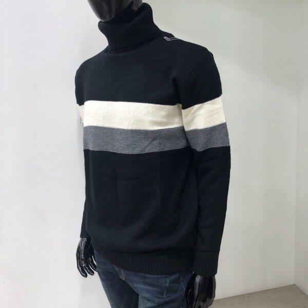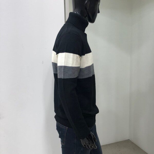 2018년 겨울 신상 남성 변형조직 블럭 터틀넥 스웨터 입니다. 변형조직과 양두조직의 서로 다른 조직감의 심플한 절개 포인트를 주었으며, 터틀넥 디테일로 보온성을 더해준 스웨터로 늦겨울까지 착용이 가능한 스웨터 입니다.