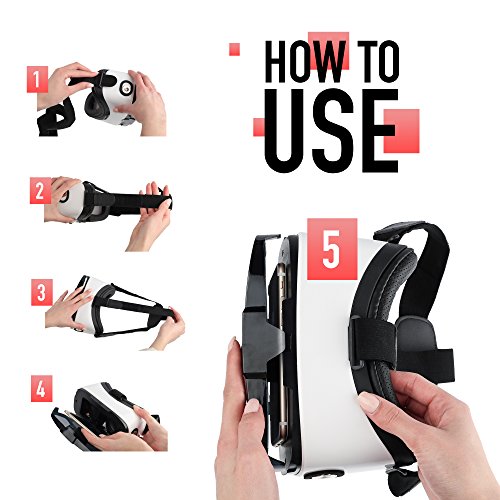 -. Feature : VIRTUALITY AVAILABLE - A new high-quality VR device from VR WEAR for the great experience of plunging into a video, game, educational or entertaining program, a virtual tour or trip. Just insert your smartphone (smartphones with 4.5-6.3" diagonal screen supported) into the virtual reality glasses and enjoy a panoramic spherical 360 degree video or watch films with IMAX cinema effects and more. / VR HEADSET WITH MAXIMUM POSSIBILITIES - Our VR accessories have a comfortable lens adjustment in 4 directions for each eye separately - adjusting the focus and IPD (interpupillary distance). A high-quality big lens with an increased 105 degree vision angle for more precise image and the reduction of dizzying effect, a functional magnetic trigger and combinability with Google cardboard. / EVERY DETAIL IS WELL-THOUGHT-OUT - For extremely comfortable use, the adjustable headset has a hole for an earphone or charger cable, a hole for ventilation, which is necessary for the smartphone not to overheat and the lens not to get foggy, and a semi-transparent lid for camera - additional reality (AR) provided. / REALLY COMFORTABLE TO WEAR - The light construction of the VR headset gives it a comfortable fit: it doesn't press on the nose, and there are adjustable straps which can be tightened or weakened. With the help of 2 sticker sets included in the kit, you can change the look of the virtual reality goggles as you like. / GIFT IDEA - The VR goggles with head strap is an original gift for anyone who likes new technology and gadgets. Looking for a holiday gift for a boyfriend, husband, friend, son or daughter, or a colleague (well, for anyone)? Give your loved ones a virtual reality headset. What can be cooler?