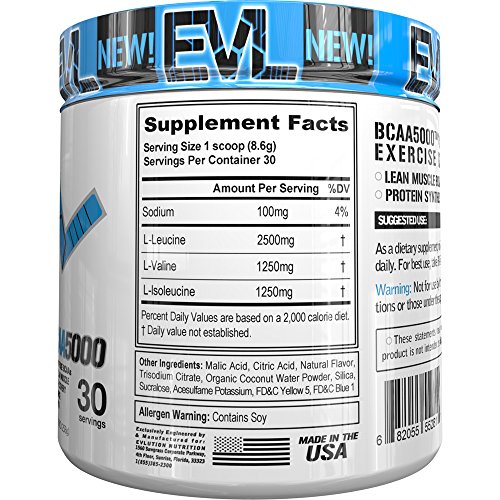 Evlution Nutrition BCAA5000 Powder (30 Servings, Lemon Lime) 5 Grams of Premium BCAAs