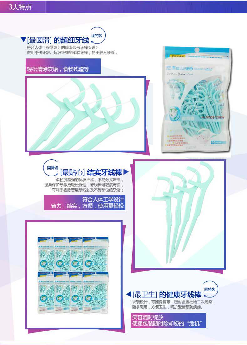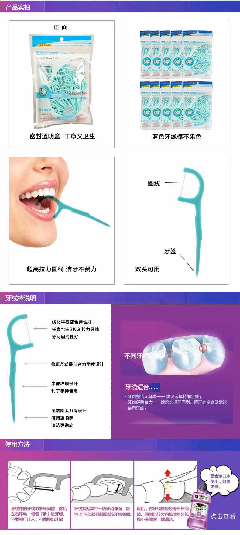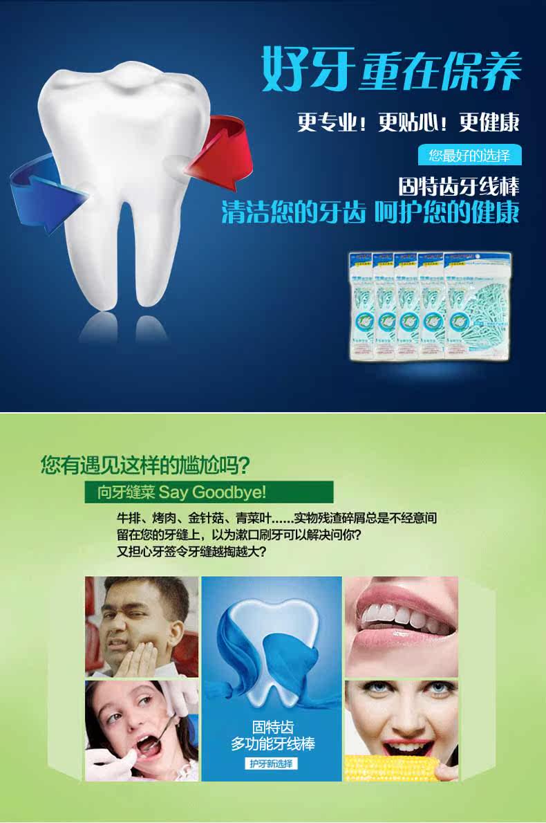固特齿牙线棒100支袋装 牙线签清洁牙齿清除残渣牙线牙签合一