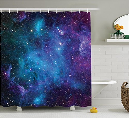 Space Decorations Shower Curtain Set By Ambesonne, Galaxy Stars in Space Celestial Astronomic Planets in The Universe Milky Way Print, Bathroom Accessories, 69W X 70L Inches, Navy Purple