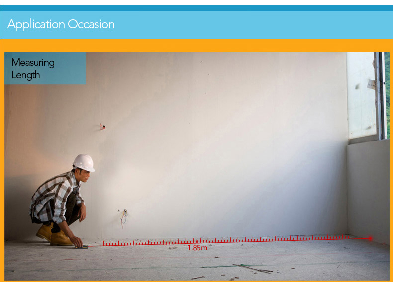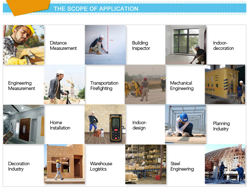 This item is specially designed to measure the distance precisely. Quick measurement of distance, area and volume with one button operation. It's with high accuracy and wide measuring range. It can also store 100 data, with addition/subtraction of measurement. It's widely used in construction and industries, especially in large areas such as rooms, apartments, buildings, real estates, factories, warehouses, etc.