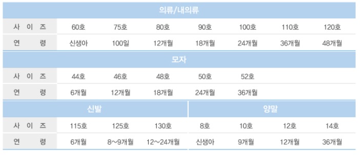 브랜드 사이즈 조견표