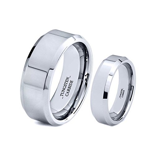 -. Feature : Tungsten Carbide Wedding Band His and Hers 2 rings with purchase / 8 mm wide His and 6 mm wide Hers, High Polish Finish Beveled Edge / Hypoallergenic Comfort Fit Design / Ring Sizes From 5 to 14 also half sizes / Note:Once you add to cart, go to gift message and add your ring sizes-inside engraving info if you like engraved during check out.