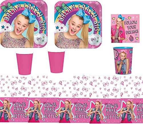 -. Binding : Toy -. Brand : Red Balloon with Unique -. EAN : 5402935161606 -. Feature : (16) 9" JoJo Siwa Dinner Plates / (16) 6.5" JoJo Siwa Lunch Napkins / (16) - 9 oz Magenta Cups / (1) 54" x 96" JoJo Siwa Tablecover / (1) JoJo Siwa Favor Cup -. Label : Red Balloon with Various -. Manufacturer : Red Balloon with Various -. MPN : RB01312018SMB1 -. PartNumber : RB01312018SMB1 -. ProductGroup : Toy -. ProductTypeName : TOYS_AND_GAMES -. Publisher : Red Balloon with Various -. Studio : Red Balloon with Various -. Title : JoJo Siwa Party Supply Kit for 16 Guests - Plates, Cups, Napkins, Tablecover