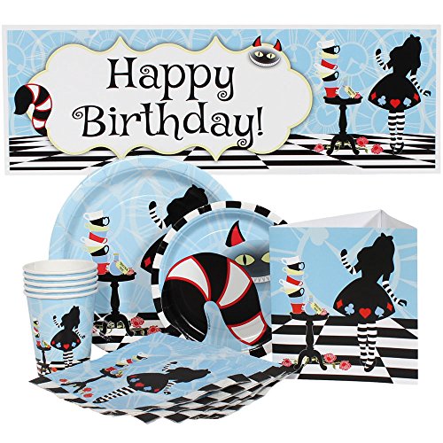 -. Binding : Toy -. Brand : Birthday Direct -. Feature : 16 paper lunch plates - 9 inch / 16 paper dessert plates - 7 inch / 16 lunch napkins - 6.5 inch / 16 paper cups - 9 oz. / 1 paper mini centerpiece (6.25 x 6 inch) and 3 paper wall decorations (6.5 x 19 inch) -. IsAdultProduct : 0 -. Label : Birthday Direct -. Manufacturer : Birthday Direct -. ProductGroup : Toy -. ProductTypeName : TOYS_AND_GAMES -. Publisher : Birthday Direct -. Studio : Birthday Direct -. Title : Alice in Wonderland Party Supplies Package for 16