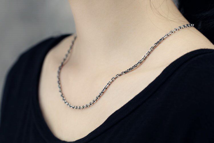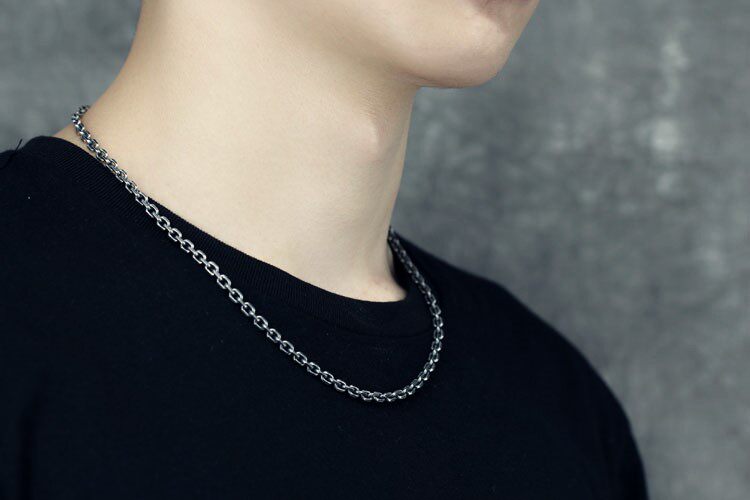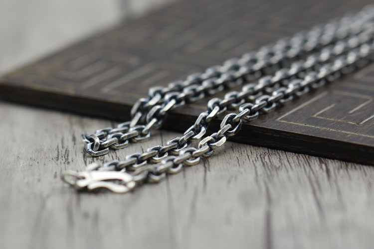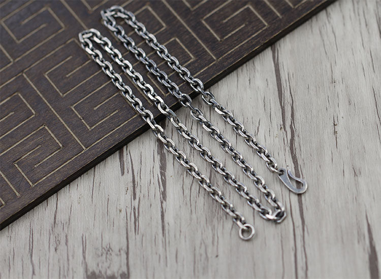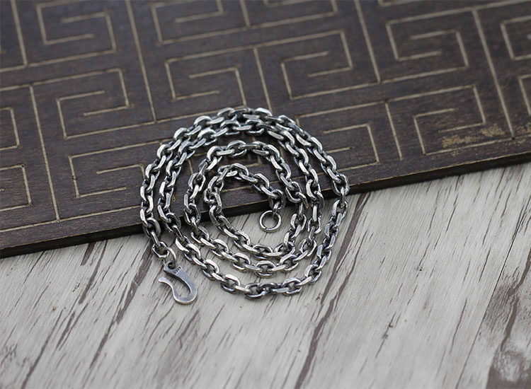 925纯银男士个性时尚太角项链锁骨链泰银潮男复古做旧手工粗链子