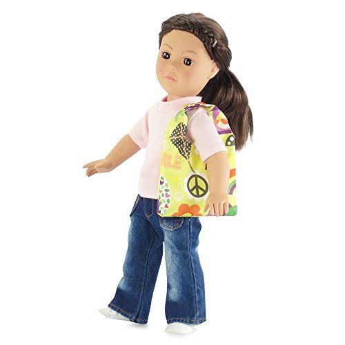 Studio : Emily Rose Doll Clothes Publisher : Emily Rose Doll Clothes Binding : Toy Product Description Super amazing value pack, including 3 of the most handy, fashionable, multipurpose "grab and go" tote bags around, perfect for your 18" doll! These fun and colorful carrier bags are designed to carry your 18 inch doll and all of her needed accessories for your day out,? and as a bonus, the carrier neatly folds and stores inside a matching doll sized purse!?? Each of the 3 designs are beautiful and bright, including a blue bag with blue, green and pink flowers,? a chocolate brown bag with multicolored butterflies and a super fun yellow bag with positive, happy sayings.? These affordable travel bags come with a metal chain to attach to mom's pocketbook or backpack, so you never leave home without it. The full sized bags and doll purses are all made from durable, water-resistant polyester fabric that is easy to clean and snaps on top to close.? Versatile and fun! *Doll Not Included* 0