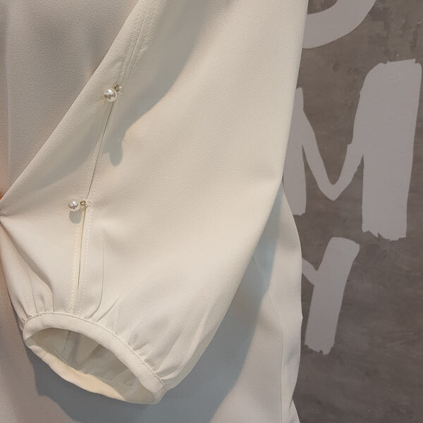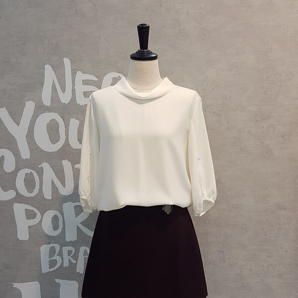 ★상품설명★ 여성스럽고 우아한 분위기의 입술넥라인이 예쁘고 세련된 블라우스입니다 소매에 트임과 진주로 포인트를 주어 한층 고급스럽고 멋스러운 블라우스입니다 부드러운 터치감의 폴리소재로 착용감이 좋은 아이템입니다 자연스러운 옆트임 디테일과 적당한 기장감이 편하게 입기좋습니다 다양한 아이템과 함께 세련된 코디룩을 연출하여 보세요