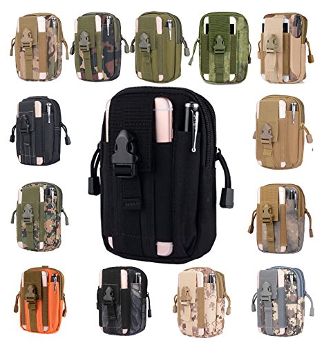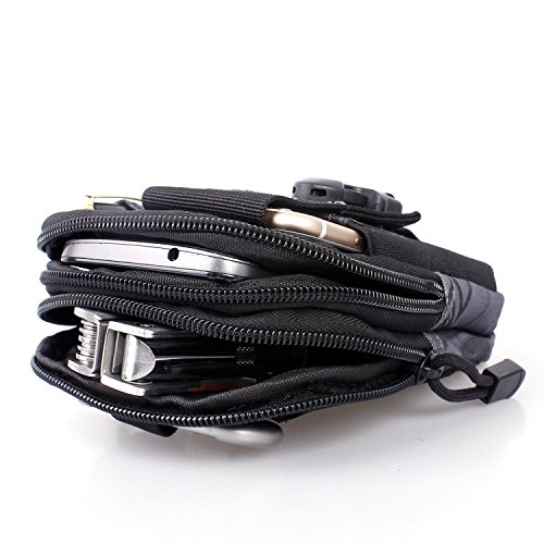 -. Feature : MULTI PURPOSE: The tactical waist pack is more-in-one pouch. Small bag is with large capacity. It is very easy to put goods in and take out. Perfect for storing cell phone, keychain, GPS device, digital cameras, medical supplies, small tools, and everything else you need readily accessible. Two zippered compartments, exterior phone pocket fits iPhone 6S/6+ with buckle closeure,exterior pen sheath / WATER-RESISTANT: The tool pouch is of strong water proofing property to ensure its long-term use in a humid environment, or that the product does not decay after flooding. / WEAR-RESISTING: The tactical pouch is constructed of high- quality 600D Nylon, and anti-scraped and wear-resisting, not easy to fade. All stitching and webbing is made of nylon materials of best quality, double plus bar umbrella hove chain head. It is really durable. / EASY TO USE: The surface of the Utility Gadget Pouch is not easy to stick dust, stains, easy to take care. / SELECTED AND 100% FREE TRIAL: One CUTE Aluminum super bright mini keychain flashlight with Carabiner as a USEFUL free plus used in many circumstances. NOW it is for PROMOTION. Order now and if you dislike within 90 days, we will buy back from you, 100% RISK FREE!