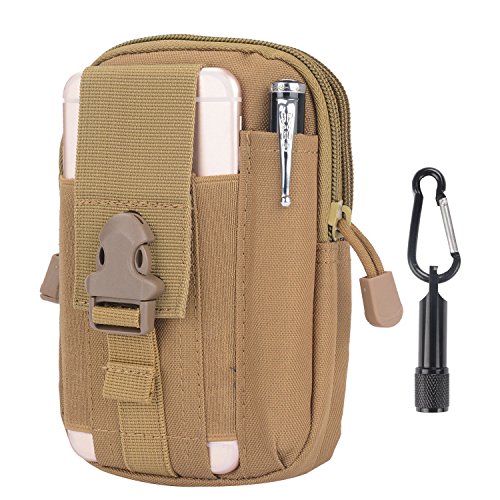-. Title : Tactical Pouch - Compact Water-resistant Multi-purpose Molle EDC Utility Gadget Gear Tools Organizer - Waist Bags Pack Cell Phone Holster - Free Bonus Mini Keychain Flashlight
