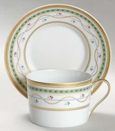 -. Title : Faberge Luxembourg Green Flat Teacup & Saucer Set