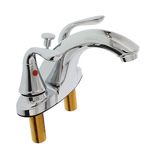 Aquat Plumb 4-Inch, Two-Handle, Polished Chrome Lavatory Faucet - Solid Metal Construction with Matching Pop-Up