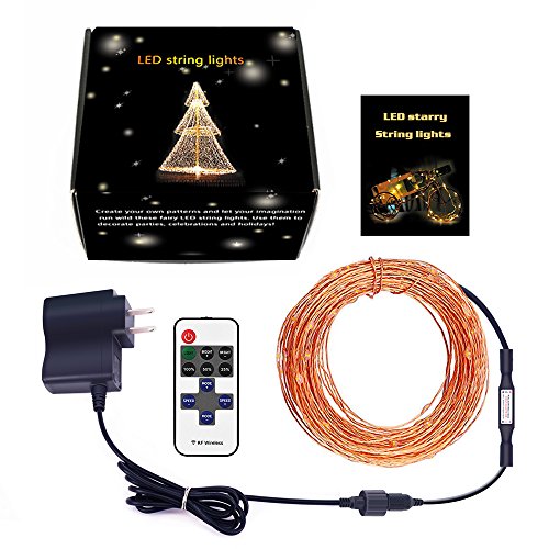 LED Christmas Lights 33ft with 100 LEDs Dimmable Waterproof Fairy String Lights for Bedroom, Patio, Garden, Party, Wedding Decoration (Copper Wire, Warm White)