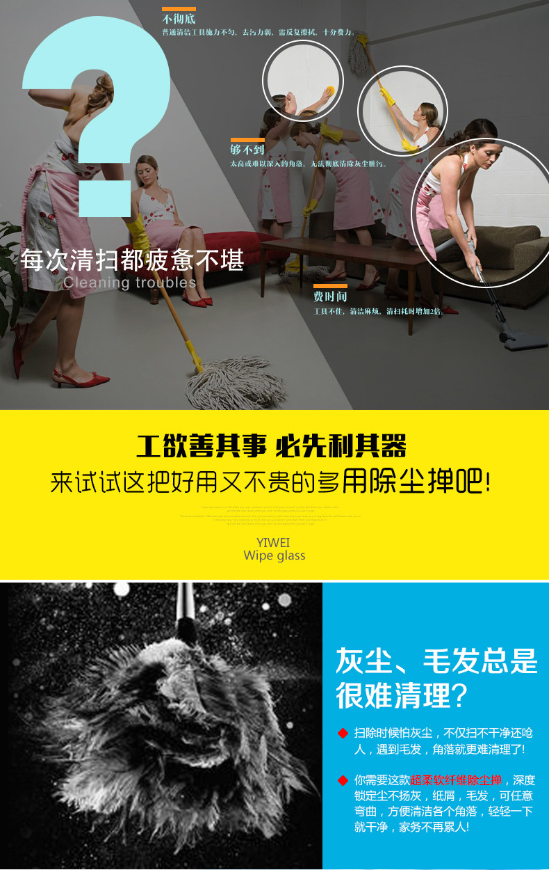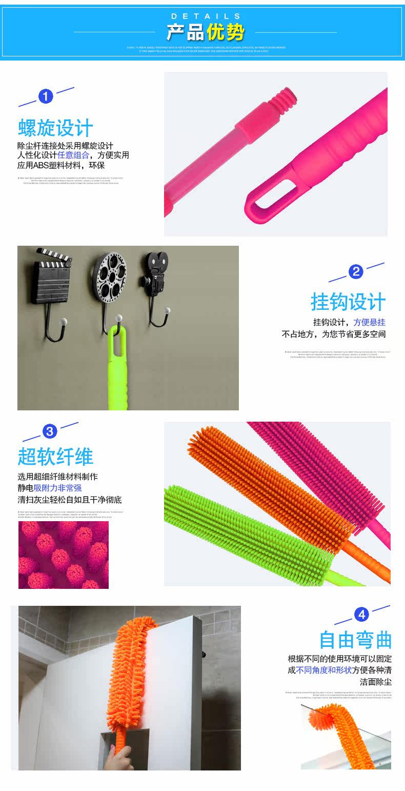 超柔软纤维鸡毛掸子家用可伸缩扫灰尘尘掸耐久不掉毛除尘掸子