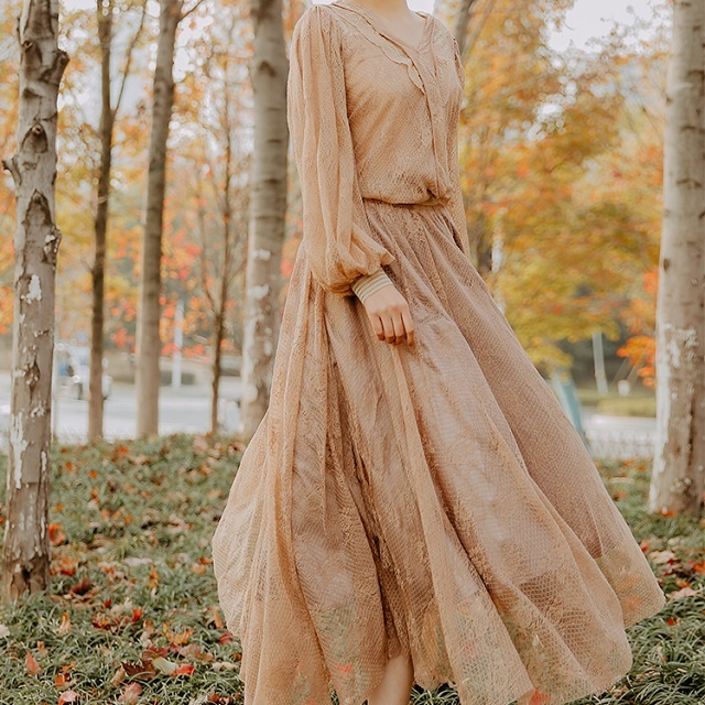 エレガント&レトロな雰囲気漂う、メッシュレースで作り上げたワンピースです♪