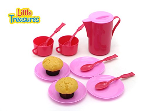 -. Feature : Break time snake includes a bright shiny play pitcher, 4 plates, 2 tea cups, 4 desert spoons and 2 toy muffins to share / Made of lightweight, easy-to-clean plastic in vivid colors / Our tea sets for girls are made of sturdy plastic to provide hours of fun and enjoyment, this pretend play tea set will allow kids to sit down / Learning outcome: Besides the fun and enjoyment part, the set contributes to the learning and growth of your kid's imaginative and social skills / The toy play set is 100% happiness assured