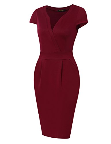 HiQueen Strechy V-neck bodycon Business Wear to Work Dresses for Women