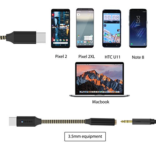 Studio : BEILA Publisher : BEILA Binding : Electronics Product Description Voihome Pixel 2/ 2XL USB C to 3.5mm Headphone Jack Cable Adapter with DAC Chipset, Type C to 3.5 Female Stereo Audio Aux Connector cord Cable Length: 5 inch(12.5CM) Material: High quality Nylon Braided, Copper. Aluminum alloy DAC Chipset: Realtek Rate: 44.1K/ 48K/96K Bit Resolution: 16/24 Hi-Res Audio Lower noise floor Universal Compatible: Fits for 3.5mm Male ports headphone equipment Female Type C devise: Pixel 2/ 2 XL, HTC U11, Samsung Note 8, S8, Motorola Moto Z, Le 2 / Le Pro 3 and Other Type C Devices Package: 1 x Type C to 3.5 mm AUX Female Headphone Jack Adapter.