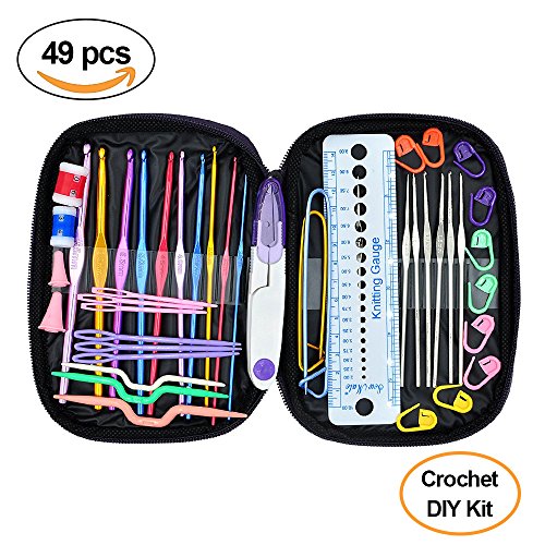 Crochet Hooks Set - Napoer 49pcs Mixed Aluminum Handle Crochet Hook Knitting Knit Needle with PU Case, Smooth Needles for Superior Results DIY Knitting Tools Set, Suitable for Crochet Lover
