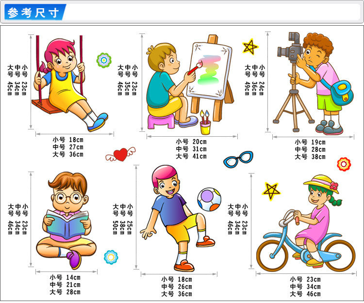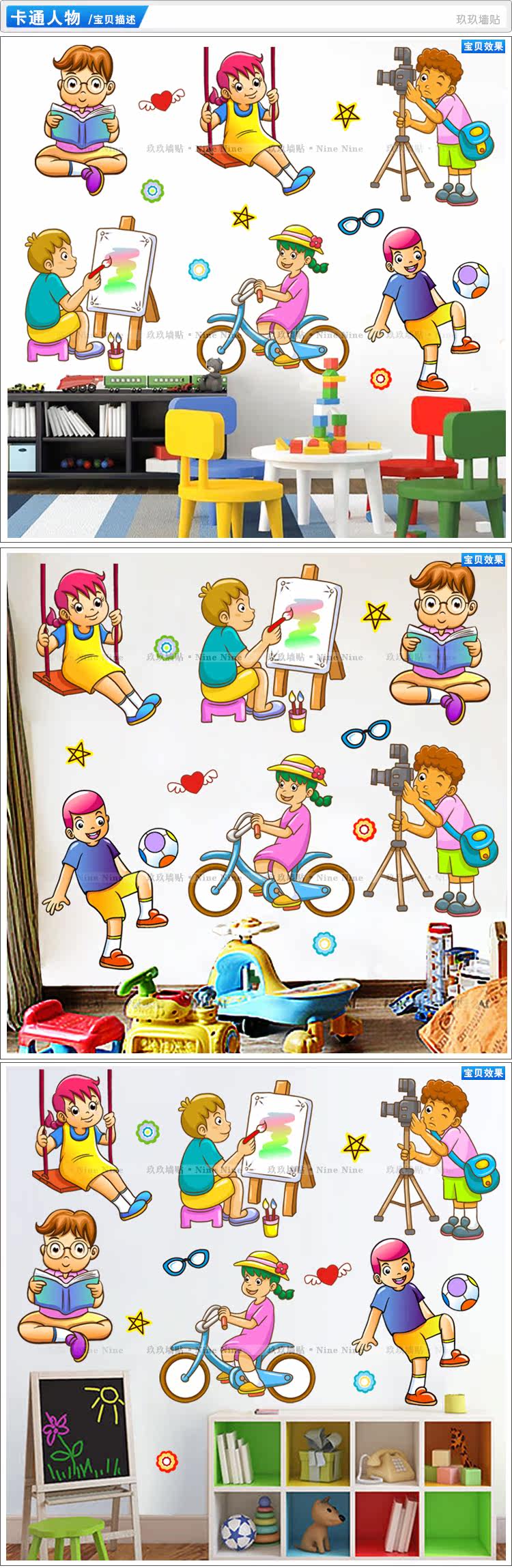 小学校幼儿园卡通小人才艺展示墙贴运动休闲画画荡秋千贴纸贴画