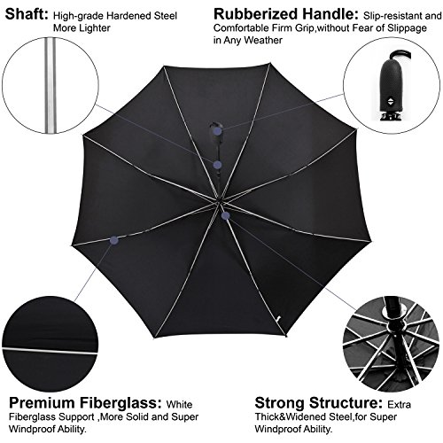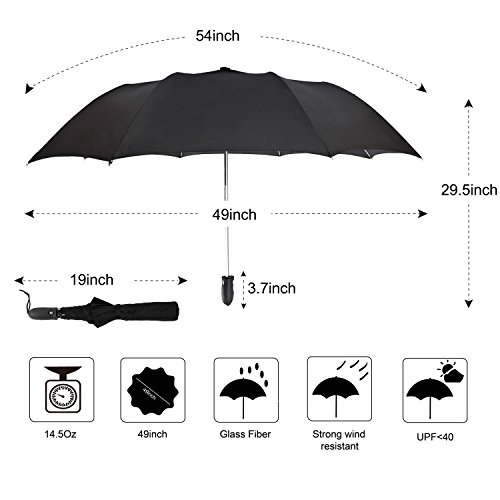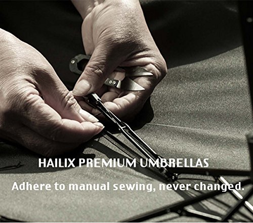 -. Feature : (54" COMPACT GOLF SIZED UMBRELLA) PERFECT TO KEEP IN YOUR CAR-The folded length of this HAILIX umbrella is only 18½ inches long making it perfect to keep in your car without damage and much easier to carry into stores and such when you are out. / ONE TOUCH AUTO OPEN CLOSE - Most golf umbrellas are opened and closed manually,or only automatically open,but Hailix golf umbrella open or close just by pressing a button within one second.Its auto OPEN and CLOSE feature gives you quick rain and sun protect. / HIGH QUALITY MATERIALS- The surface of this kind of umbrella is made of ultra-high density pongee fabric. The frames are a combination of electroplated steel shaft and premium resin-reinforced fiberglass ribs. / SUPERIOR WINDPROOF/WATERPROOF- Hailix folding umbrella is fortified with 8 fiberglass ribs, meanwhile, the premium Teflon fabric with silver coating that is water repellent and quick to dry, it can protect you from strong wind, heavy downpour or under the sun. / LIFETIME REPLACEMENT GUARANTEE- Every Hailix umbrella comes with a lifetime replacement guarantee against defects in our premium materials and quality workmanship.