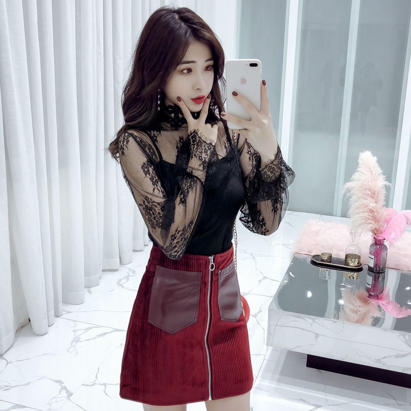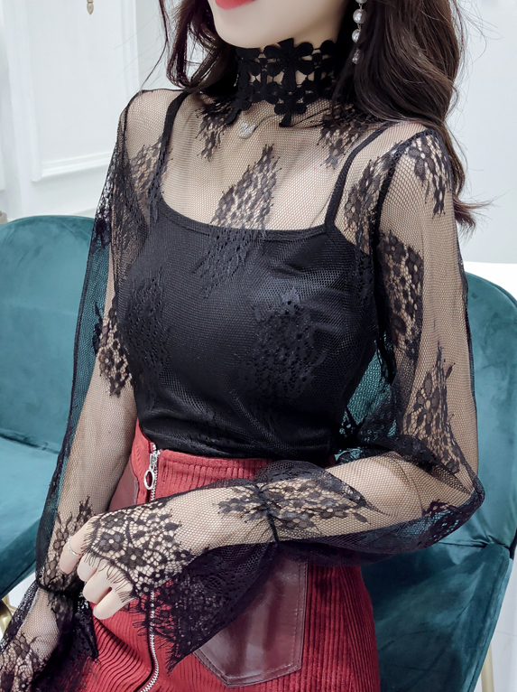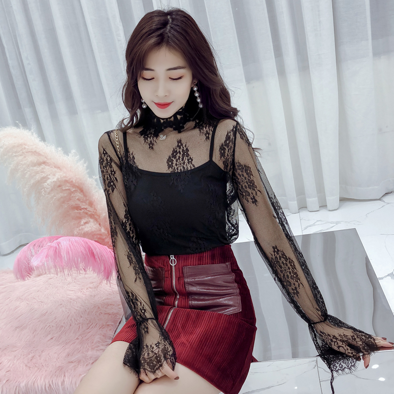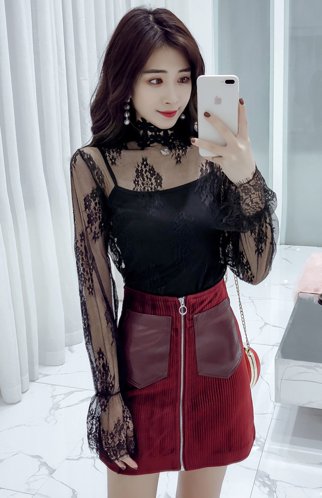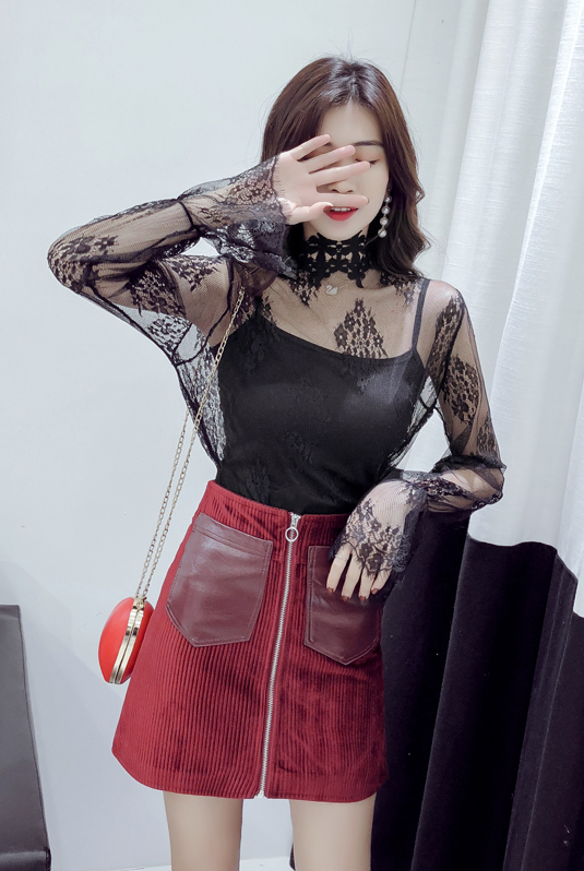 ハイネックに花柄の刺繍が全体的に施してあります♡