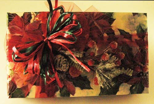 -. Feature : Deluxe Assortment with Poinsittia Wrap / Two pound Assortment of fine, gourmet Swiss chocolates