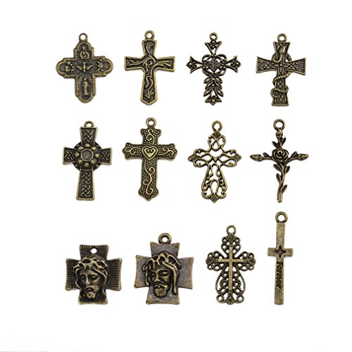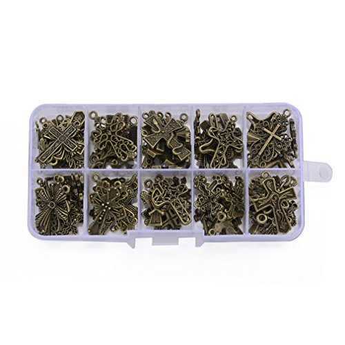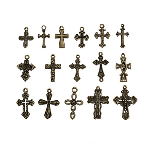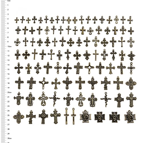 ZX Jewelry 100 pcs Mixed Style Antique Bronze Cross Pendants Charms Necklace for DIY Jewelry