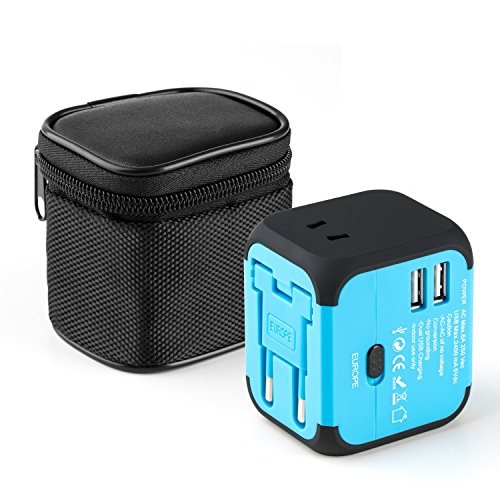 Travel Adapter, Universal Travel Adapters All-in-one Worldwide Chargers for US UK AU EU with Dual USB Charging Ports Universal AC Socket - Safety Fused(blue)