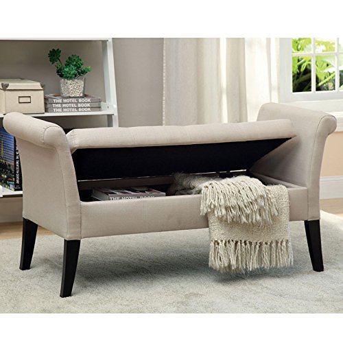 -. Brand : 247SHOPATHOME -. Feature : Materials: Wood, Fabric / Storage Space / Curved Arms & Legs / Large Bench: 54" W x 17.75" D x 26.25" H / SEAT HT: 17.5", SEAT DP: 17.75" / Assembly required -. Label : Furniture of America -. Manufacturer : Furniture of America -. ProductGroup : Furniture -. ProductTypeName : HOME_FURNITURE_AND_DECOR -. Publisher : Furniture of America -. Studio : Furniture of America -. Title : Doheny Contemporary Style Fabric Padded Bench
