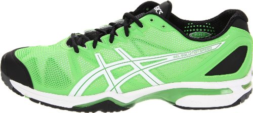 Studio : ASICS Publisher : ASICS Binding : Apparel Product Description The Asics Gel Solution Speed is a new lightweight addition to the Asics tennis shoe line and offers an excellent combination of Asics hallmark running shoe technology with the lateral support needed for tennis. Features GEL Cushioning System, Flexion Fit upper, and Personal Heel Fit foam collar for custom comfort. Stay light on your feet and get noticed in this great new shoe! Color: Green/Black/WhiteFeatures: Solyte 55 Midsole Material-Lighter than Asics' standard EVA and SpEVA, combined with improved cushioning and durability.Heel and forefoot GEL Cushioning Systems-Attenuates shock during impact and toe-off phases.Flexion Fit Upper-Provides form-fitting comfort without sacrificing support.Trusstic System-Reduces the weight of the sole unit while retaining the structural integrity of the shoe.PHF (Personal Heel Fit)-Memory foam lined heel collar molds to athlete's heel, creating personalized fit.PGuard toe protection for added toe durability.AHAR rubber outsole for excellent durability.Average weight: 13.2 oz. (Mens 10.5) |