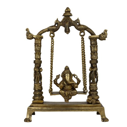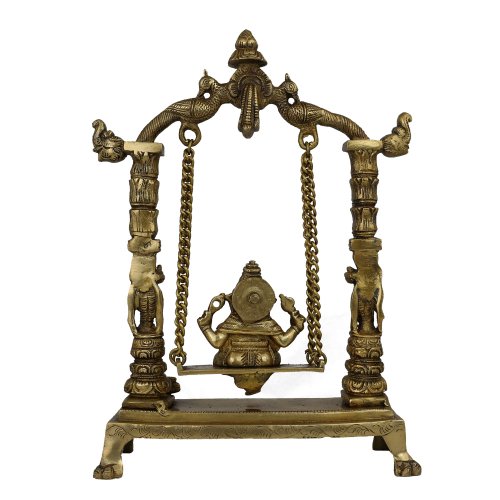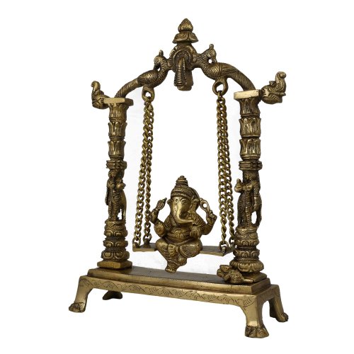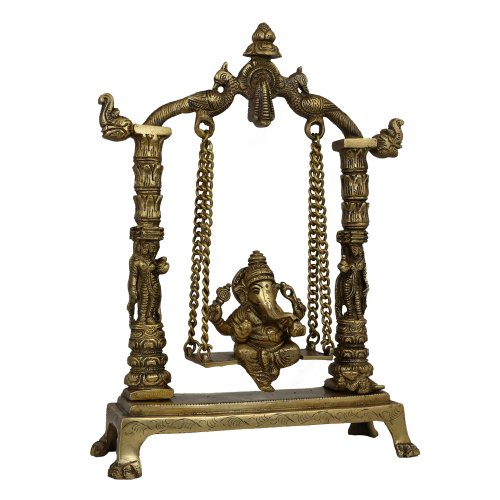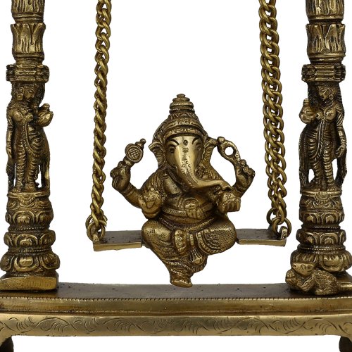 Statue Ganesha Sculpture Decor Sitting On Jhula; Brass; 12 Inches
