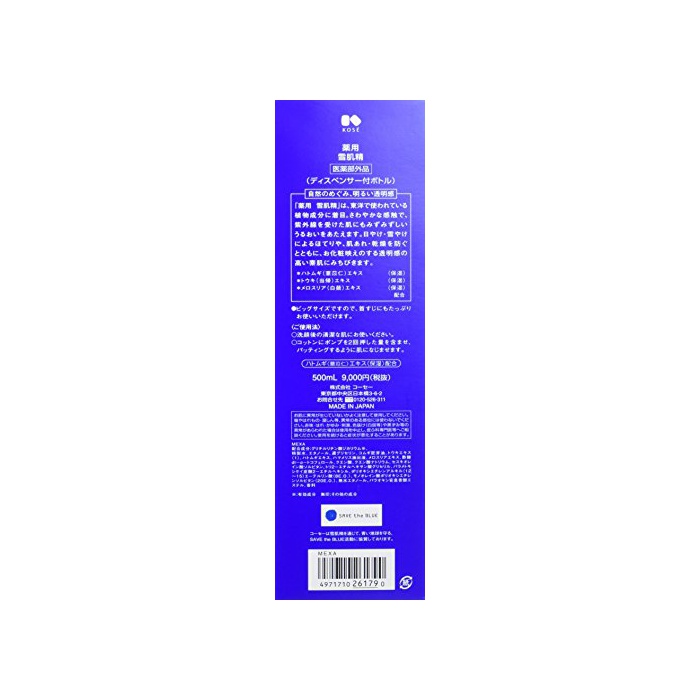 원본상품명: コセ 雪肌精 化粧水 「SAVE the BLUE」デザインボトル 500ml【限定】