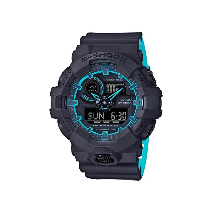 The set includes: body, box, instruction manual, warranty card is the instruction manual that came for everyday life waterproof: G-SHOCK from 20BAR to pursue the impact structure target time notification function Stopwatch needle retraction function toughness continue to evolve, large the GA-700 of the big case of the front button and the powerful to the base, New model wearing a neon color appeared. Whole body finished in matt black is the brand color, it has incorporated the color used in sneakers and cap is a mast item of street fashion. Ashirai accent color to shape both sides time of the dial, and finished to look casually at the time of tilting the arm. In addition, the band back is molded in a different color and surface, the hour and minute hands, up to the time character stuck in color scheme thoroughly. 2 Model (1A2JF, 1A4JF) finished with one tone in addition to, the bezel ring, the hour and minute hands, 3 model lineup when shaped side 1A9JF finished colorful arranged multicolor like. Finishing based on black, it is the emergence of New model from GA-700 to be active in the casual fashion scene which has been subjected to accent color. / Module No: 5522 / ■ Shock structure / ■ 20 atmospheric pressure waterproof function / ■ needle retraction function (when the needle is difficult to read overlaps the liquid crystal display can be temporarily retracted needle from the top of the liquid crystal display) / ■ world time: 48 cities (31 time zones, daylight saving time setting function) time display of + UTC (Coordinated Universal time), UTC direct call function, Home time of the city features replacement / ■ stopwatch (in hundredths of a second, 24 hours in total, with split, one-push measurement start with from the time mode, target time notification function) / ■ timer (set unit: 1 minute, set up: 60 minutes, 1/10, measured in seconds) / ■ this five alarm (snooze function with only one) Times / ■ life approximately 5 years / ■ full auto calendar / ■ 12/24-hour display switching / ■ Beep ON / OFF switching function / ■ LED light (Super Illuminator Afterglow function, switching afterglow time (1.5 seconds / 3 seconds) with) / resist shock / Accuracy: ± 15 sec / LED: White / Around the arm (maximum) about 21.5cm