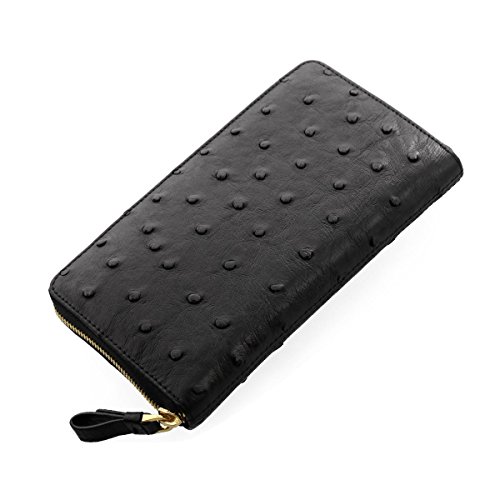 -. Title : 長財布 レディース 多機能 本革 オーストリッチ フルオープン ラウンドファスナー 小銭入れ付き