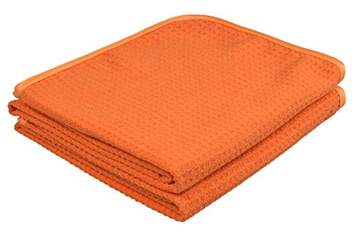 Waffle Weave Towel Microfiber Car Cleaning Cloths Car Detailing Drying Towels (Pack of 2) (16"x27", Pumpkinx2)