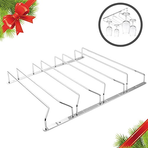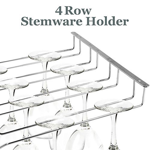 Up Wine Rack | Under Cabinet 4 Rows Wine Glass Stemware Holder Storage Organizer | Durable Rustproof Chrome Steel with Screws Included for Effortless Installation in Kitchen |Silver| 174.3