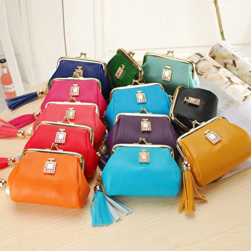 Womens Leather Tassel Mini Coin Purse Fashion Change Purse With Clasp