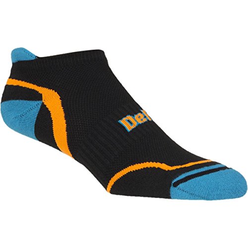 Studio : DeFeet Publisher : DeFeet Binding : Sports Product Description Some of us love running for its freeing adrenaline rush and simplicity of equipment. For others (ahem, cyclists), it's a necessary evil to get through winter training or appropriately prepare for those lung-burning run-ups and pesky barrier sections found on the cyclocross course. DeFeet makes it better for everyone, regardless of motivation, with the DeFeet Run Cushion Tabby socks. Available in myriad color options, these socks jazz up any run with a flash of style and a massive dose of supportive comfort. Built on DeFeet's D-Evo platform, these socks are made with runners in mind. A barely there toe seam eliminates annoying seam bunch and reduces friction points, minimizing potential for blisters and discomfort over the miles. Carefully shaped forefoot and heel padding provides cozy cushioning without excess bulk that could get in the way of shoe fit, and integrated midfoot support promotes optimal foot mechanics and gives an added boost of support in tandem with your choice of shoes. DeFeet's Tabby cuff sits low under the ankle bones, with a slightly raised cuff at the rear to show off some color and prevent the sock from slipping down your heel. As an added bonus, these socks incorporate recycled CoolMax EcoMade fabric, so they're friendly to the environment you run through every day. 0