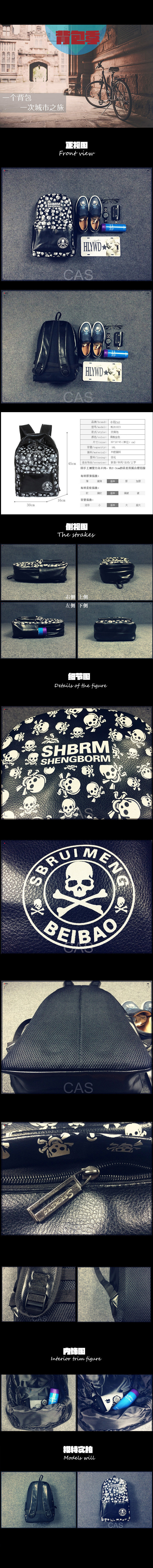 黑色骷髅头双肩包男潮PU皮时尚潮男背包休闲旅游电脑书包潮