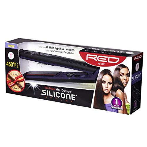 Kiss Products Red Silicone Flat Iron, 1 Inch, 1.1 Pound