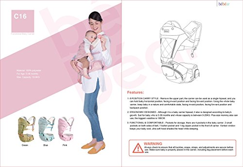 6 POSITION CARRY STYLE - Remove the carrier main body used as a single hipseat, and you can hold baby horizontally position, inward facing position and forward facing position. Using the whole baby carrier, keep baby in a nature and comfortable state,inward facing position, forward facing position and backpack position.