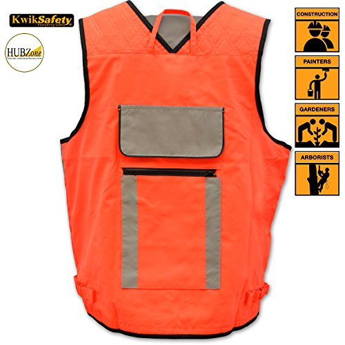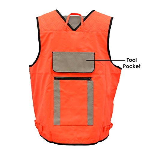 - Special Features – 1 grommet on each lower pocket for measuring tapes, string and other measuring tools. 1 mic tags for radios. Utility pockets for pens and other various tools. Reinforced zipper lining for maximum durability. Velrco pockets to safely hold screws, nails, tools, etc. Interior pockets on both sides for more storage. Heavy Duty Zipper Front Closure with Durable Webbing Reinforcement Specially designed reflective material will substantially increases day & night visibility.