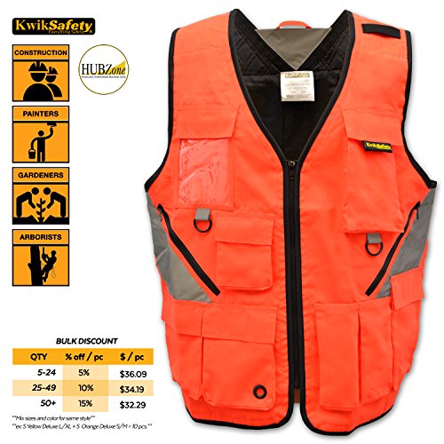KwikSafety Reflective Tactical Utility Tool Vest | Waterproof Quick Dry Material with Ten Pockets | World Natural Disaster Volunteer, Search and Recuse Team, Emergency Crew Work Wear | L/XL