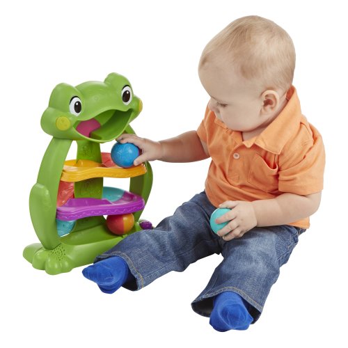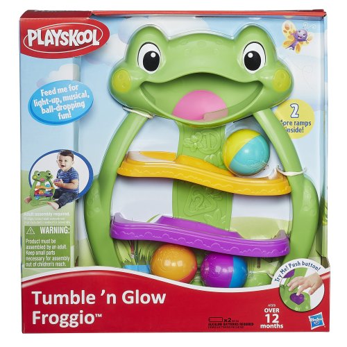 - The Tumble n Glow Froggio toy has 3 ways to delight baby