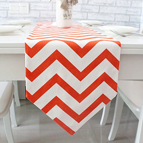 - Title : Chevron Zig Zag Cotton Linen Canvas White Printed Table Runner (Yellow,Black,Orange,Navy Blue,Aqua,Gray) (Orange, 12"x63")