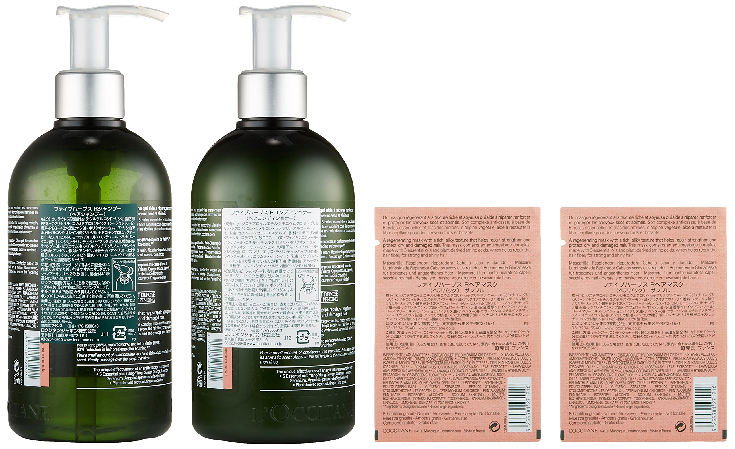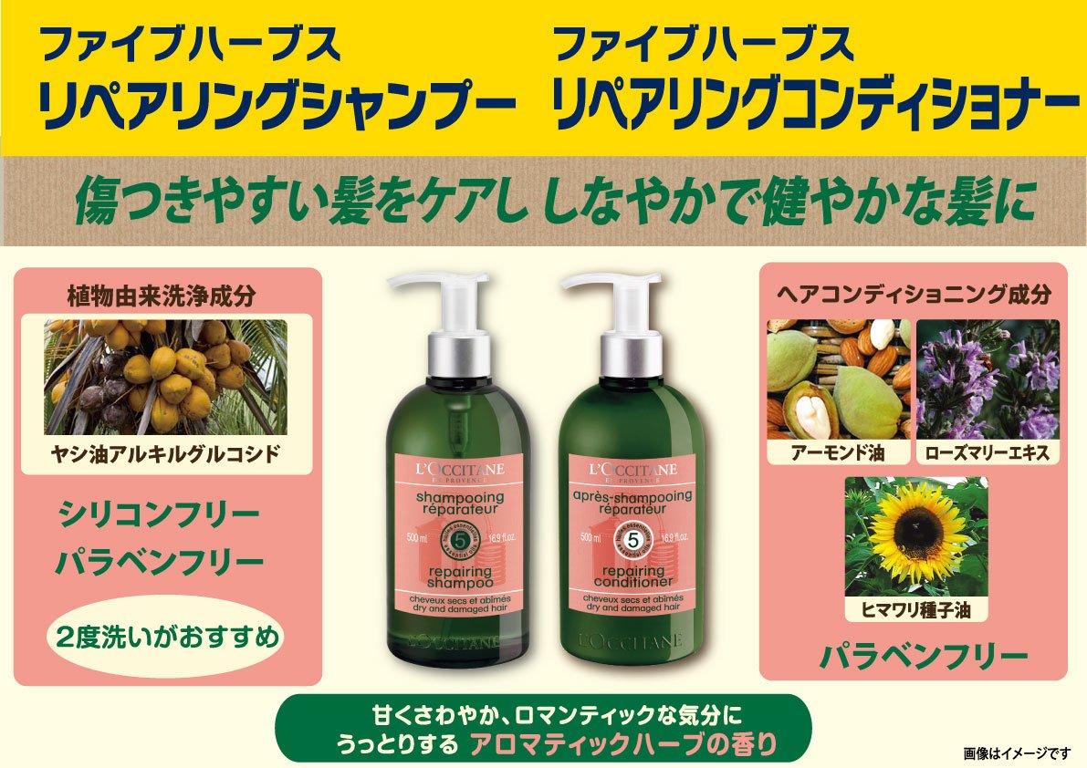 ※ Angelica root oil, angelica seed oil, geranium oil, orange oil, ylang ylang flower oil, lavender oil (all hair conditioning ingredients) 【set contents / capacity】 Five herbs repair shampoo (500ml), Five herbs repairing conditioner (550ml