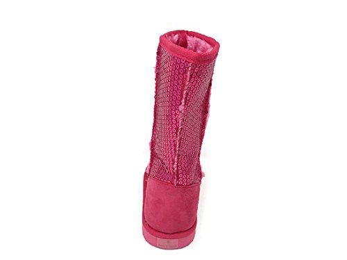 Binding : Apparel Product Description Winter is here! Keep your feet nice and warm with Women's Mid Calf Warm Sequin Winter Snow Boots Booties Shoes (Fuchsia). They feature a suede heel counter and shiny sparkly fuchsia sequins all throughout the boot. Faux fur inner lining to provide your feet warmth and comfort. Synthetic EVA sole will provide extra support and traction. Mid calf design for easy slip on/off. Vegan friendly- made or manufactured without the use of animal products. May run small please measure your feet and compare them with our measurements to select the best size that will fit. The measurements are as follows: Size 5 Length 25.5cm Width 10.5cm Size 6 Length 26.5cm Width 10.5cm Size 7 Length 27cm Width 11cm Size 8 Length 27.5 Width 11cm Size 9 Length 28.5cm Width 11.5cm Size 10 Length 29.5cm Width 11.5cm 0