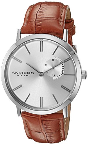 -. Title : Akribos XXIV Men's AK848SSBR Silver Dial Brown Leather Strap Watch